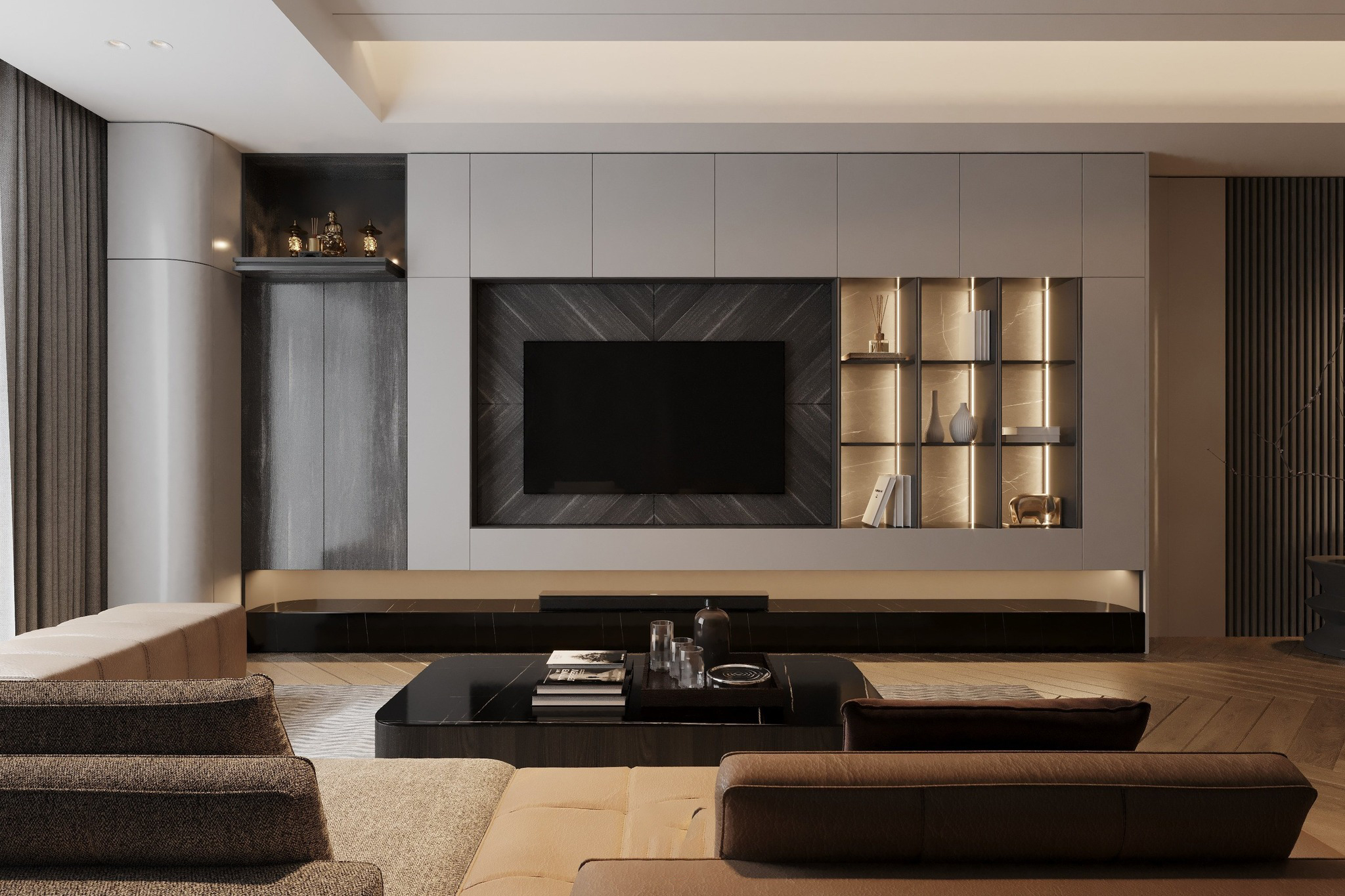 Bàn thờ không chỉ là khu vực đơn thuần, đây còn nơi chúng ta bày tỏ lòng thành đối với tổ tiên và giúp giữ vận khí, tài lộc của gia chủ. Vì vậy, nó rất được chú trọng trong quá trình thiết kế thi công phòng khách.
