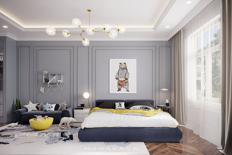 Gia chủ nên chú trọng đến sự phù hợp và tính tiện nghi sử dụng của đồ nội thất. Với phong cách này, nội thất phòng ngủ sẽ được bài trí tối giản, lược bỏ các họa tiết. Các nội thất như tủ quần áo, giường, sàn gỗ tự nhiên sẽ tạo điểm nhấn cho không gian; vừa để thể hiện cá tính độc lập, mạnh mẽ của bé.