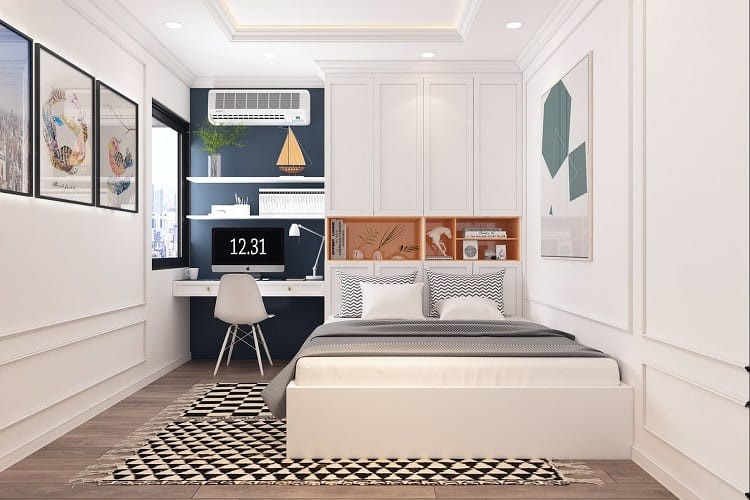 Phòng 10m2 diện tích sẽ nhỏ hơn một chút. Kết hợp, gia tăng công năng cho nội thất là giải pháp để đảm bảo công năng và tiện nghi cho phòng ngủ.