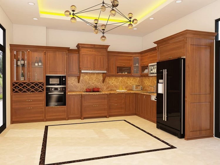 · Nội thất bếp gỗ gõ đỏ sang trọng