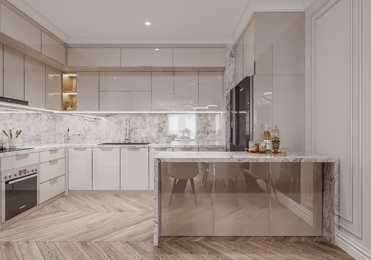 Mẫu thiết kế tủ bếp đẹp hiện đại chữ U