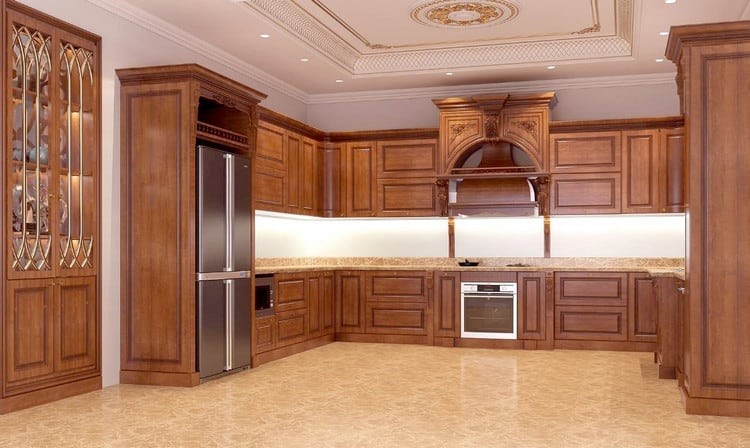 Mẫu thiết kế tủ bếp đẹp hiện đại từ gỗ tự nhiên