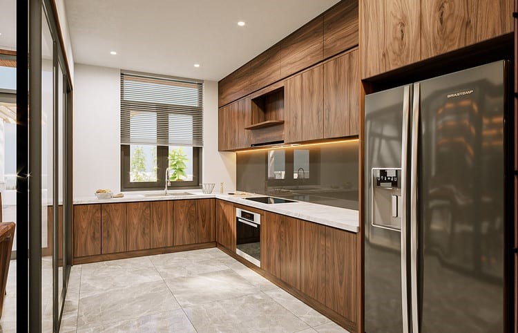 · Nội thất phòng bếp gỗ óc chó sang trọng